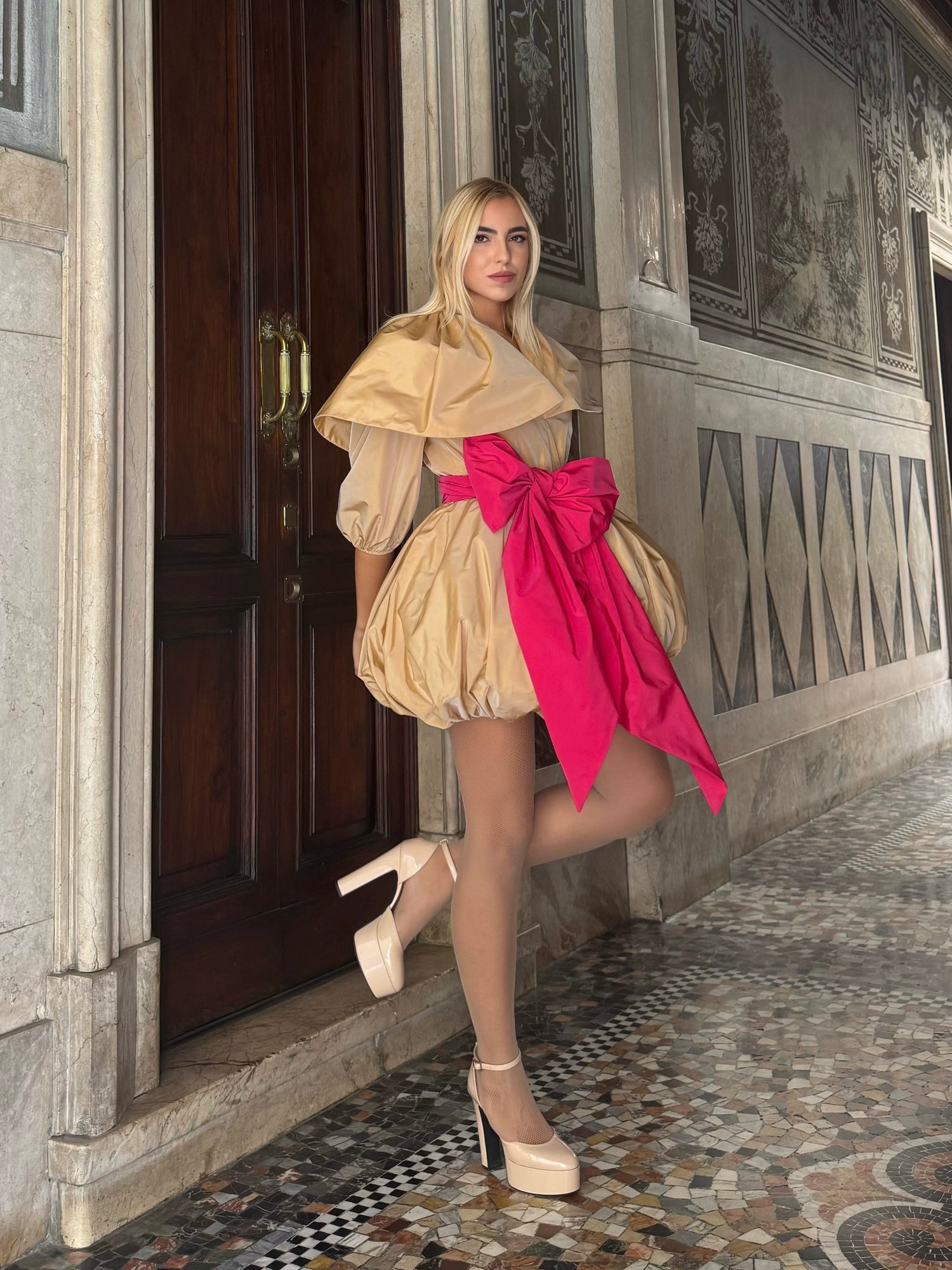 You will have the opportunity to experience a personal encounter with the designers and wear the iconic garments of the collection, made by mastery with skill by Italian haute couture.